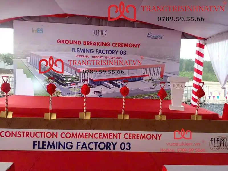 Dịch vụ khởi công tại Tp Hồ Chí Minh của Trangtrisinhnhat chúng tôi được thành lập hơn một thập niên kỉ. Tạo dấu ấn riêng biệt cho thương hiệu trong lĩnh vực tổ chức lễ khởi công tại thành phố Hồ Chí Minh nói chung và các tỉnh, xã lân cận nói riêng. Lễ khởi công không chỉ là đánh dấu một cột mốc quan trọng trong quá trình hình thành và phát triển của một dự án, một thương hiệu chuẩn bị được ra mắt thị trường trong tương lai gần.